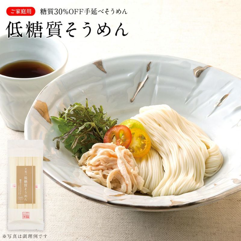 糖質約30%オフ。食物繊維を多く含んだ手延べそうめんです。(当社比)