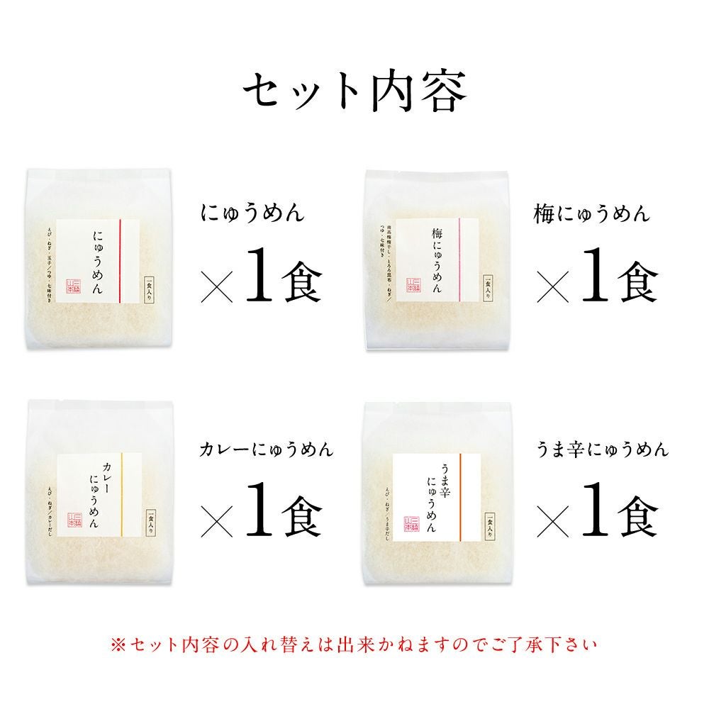 他の画像を見る 簡単調理のにゅうめんシリーズカップタイプ詰合せ にゅうめんシリーズ カップタイプ (4食セット) (V-D-4A) 本体価格 ¥ 2,850 販売価格 ¥ 3,078 税込 お気に入りに登録する